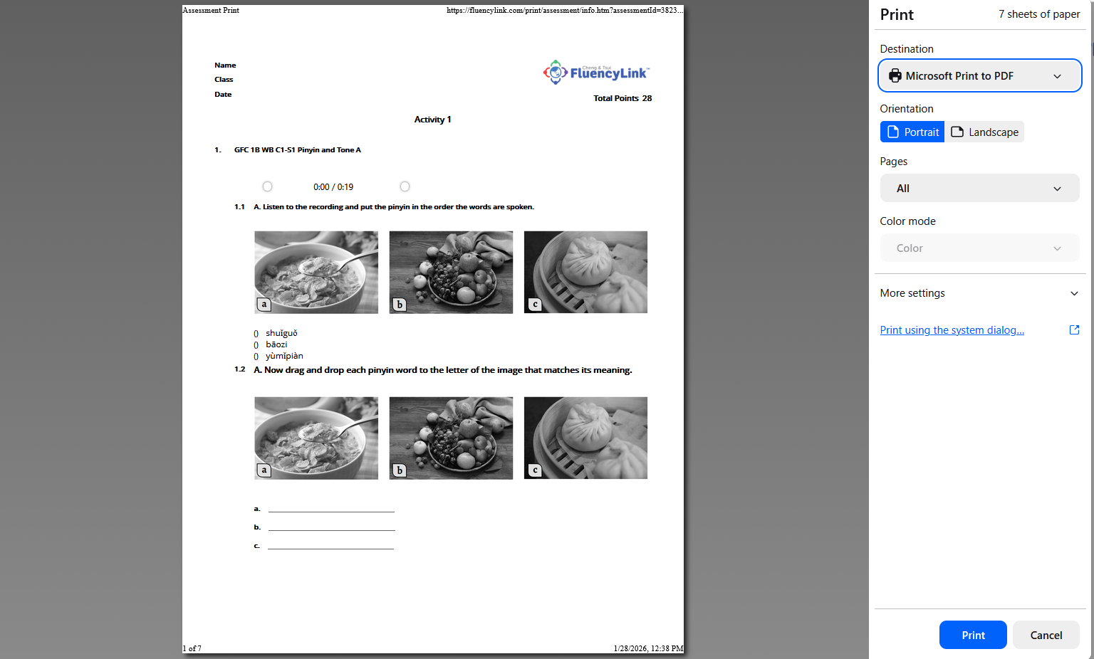 - Select the option to print "With Answer" (answer key) or "Without Answer" (for students)