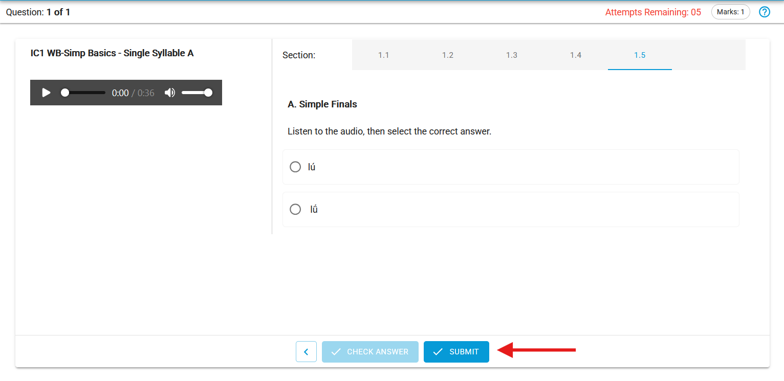 For students who are part of their teacher's class on FluencyLink, after checking your answers, you can submit your work to your teacher to review and further grade. Both closed- and open-response questions can be submitted. For more information about submitting your answers, please see: Activities (Student)