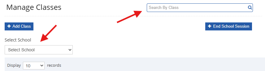 3. Click "Class" in the sub-menu. You will be redirected to the "Manage Classes" page.