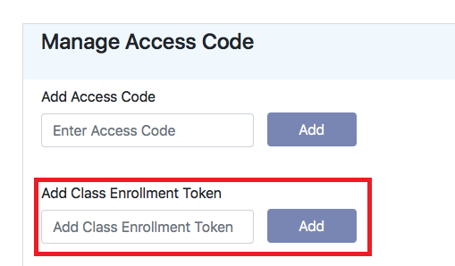 In the Add Class Enrollment Token field, paste the token you received from your instructor for the new class and click the Add button.