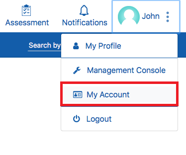 In the upper right of the screen, click on the account name and select My Account from the drop-down menu.