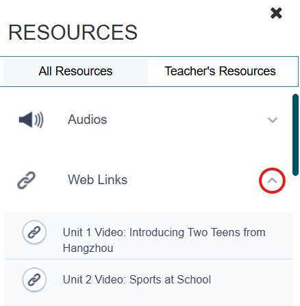 Hotspots for any Resources (audio, video, documents) will also appear in the book. Click on a hotspot within the book to access that resource.