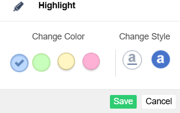 - If desired, you can change the color or style of the highlight. The color options are: blue, green, yellow, and pink. The style options are: underline and highlight.