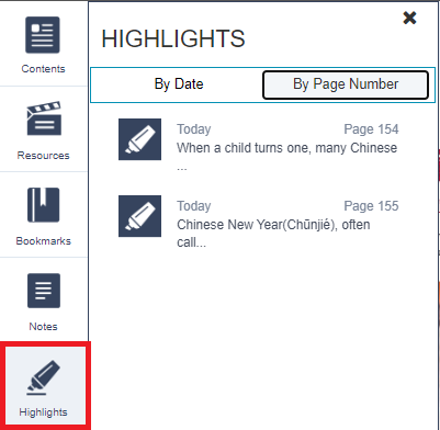 (Note: The student/teacher/school admin/district admin can view only those highlights that they have created themselves.)
