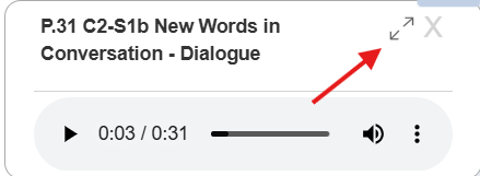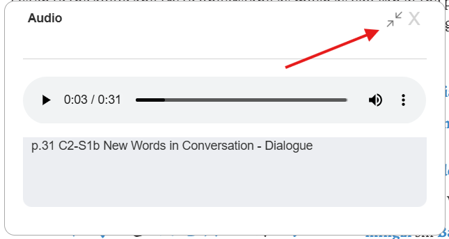 Arrows: Click to move the audio box between the bottom-right corner of the page and the center of the page.