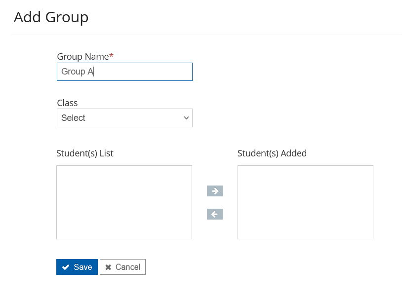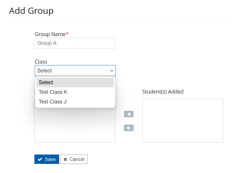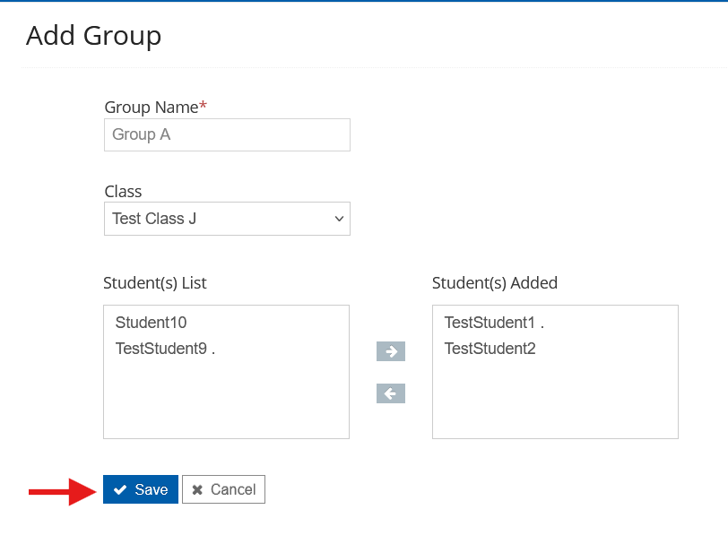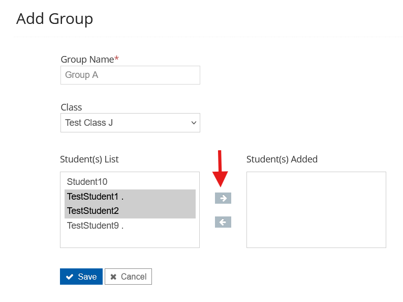 - Click on the right arrow to move the students to the Student(s) Added section