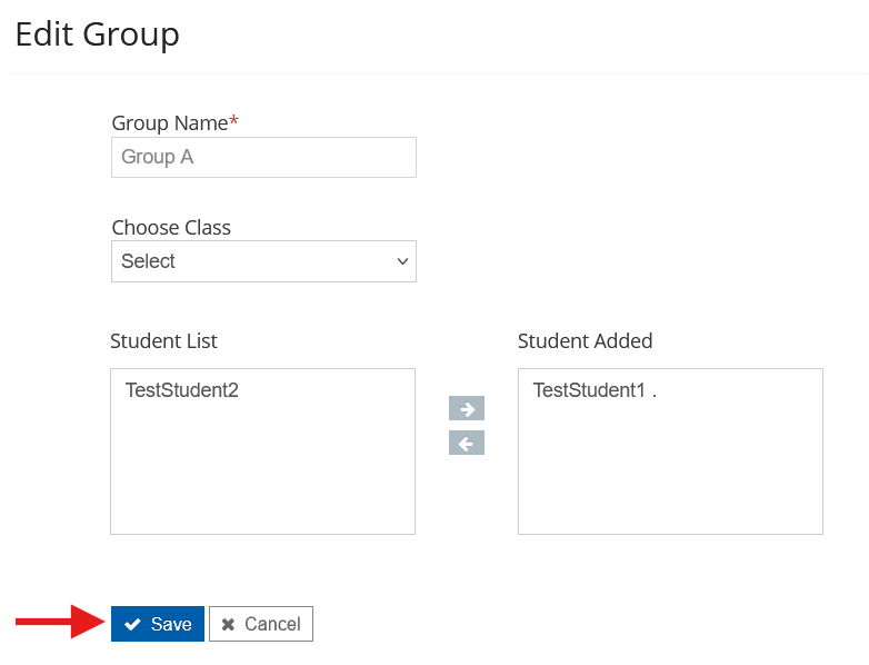- Select the names of the students you want to move from your group in the Student Added section