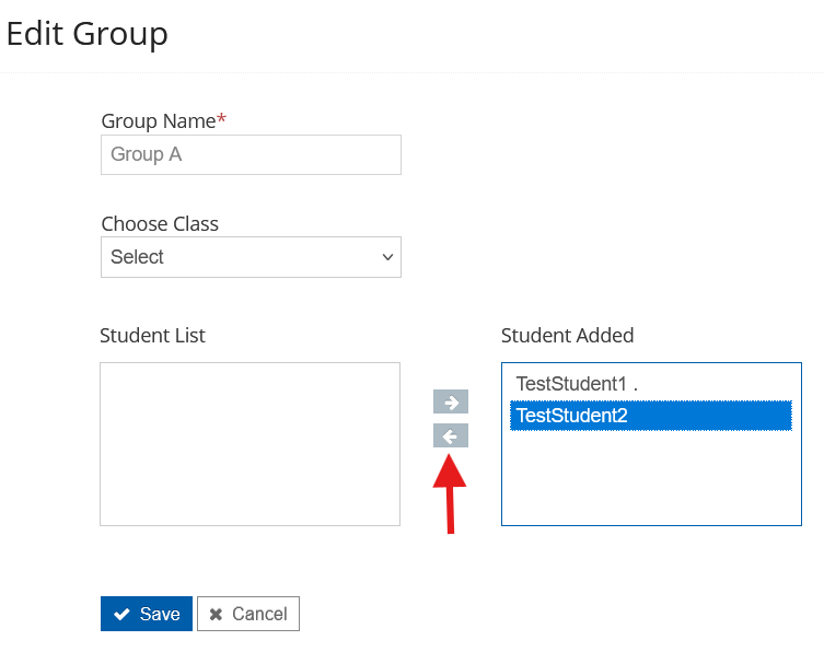 - Click on the left arrow to move the students out of the Student Added section