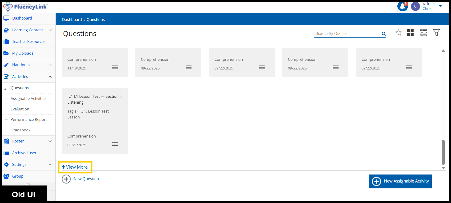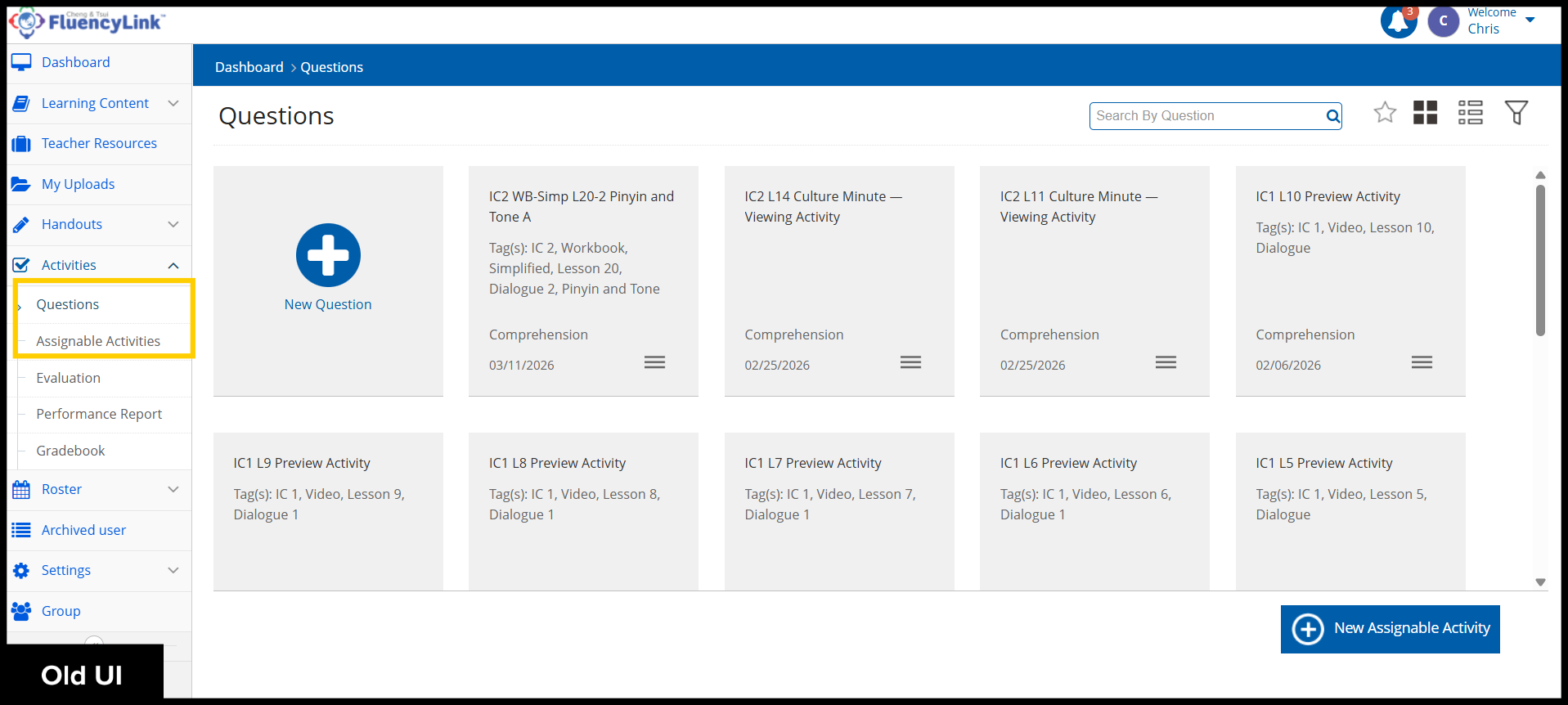 Switch back and forth between viewing Activities and Questions with convenient tabs.