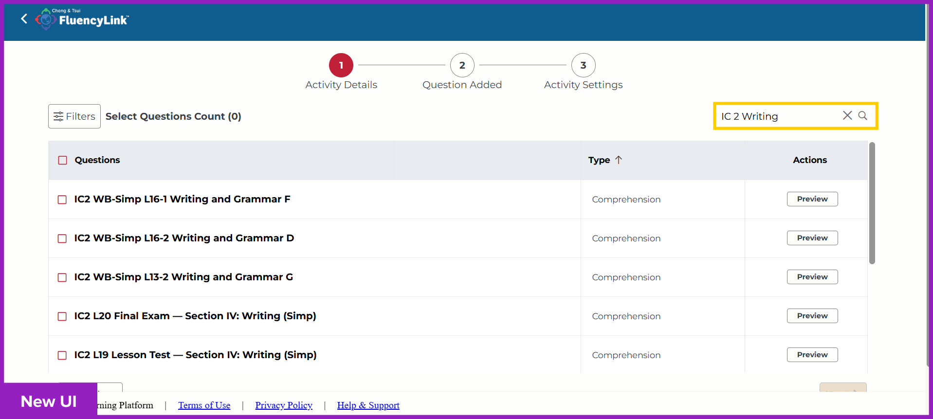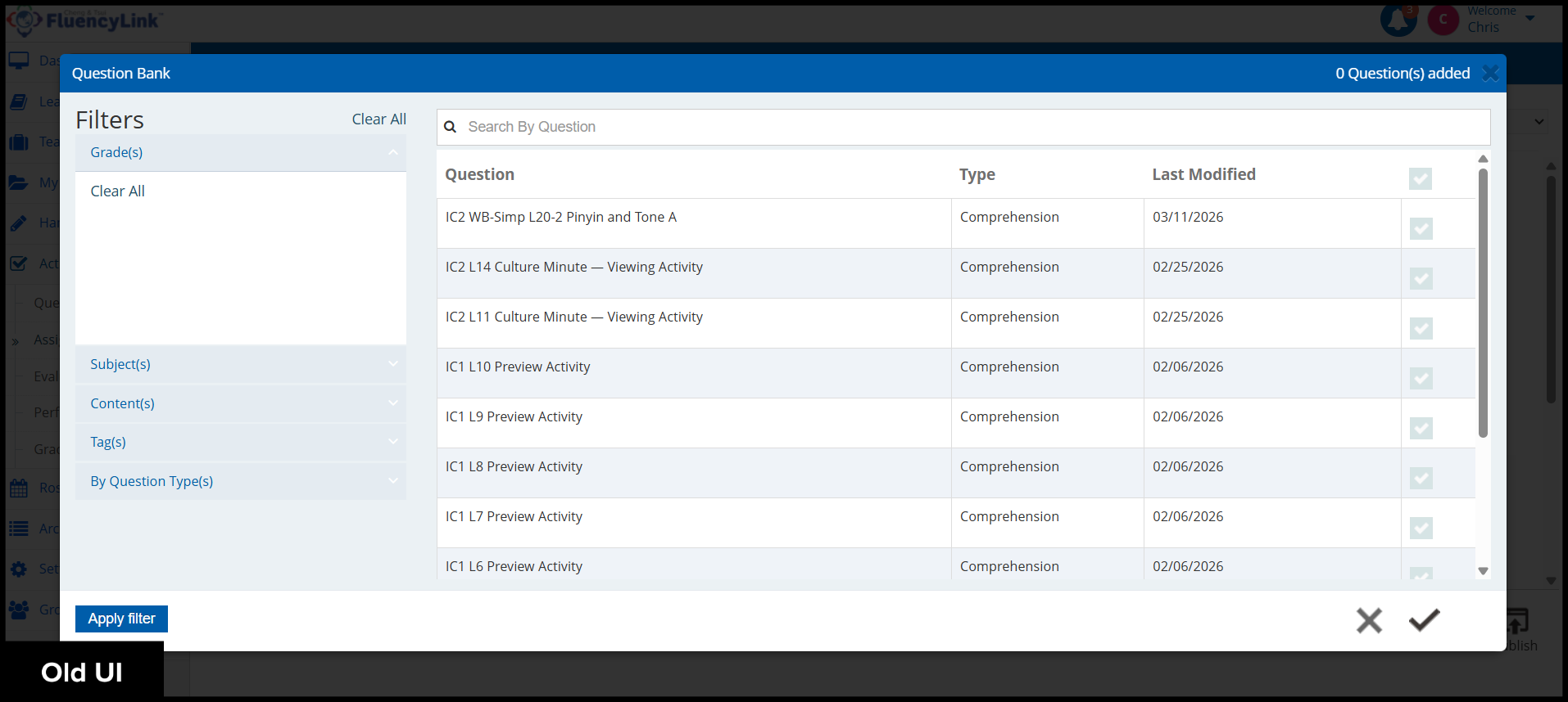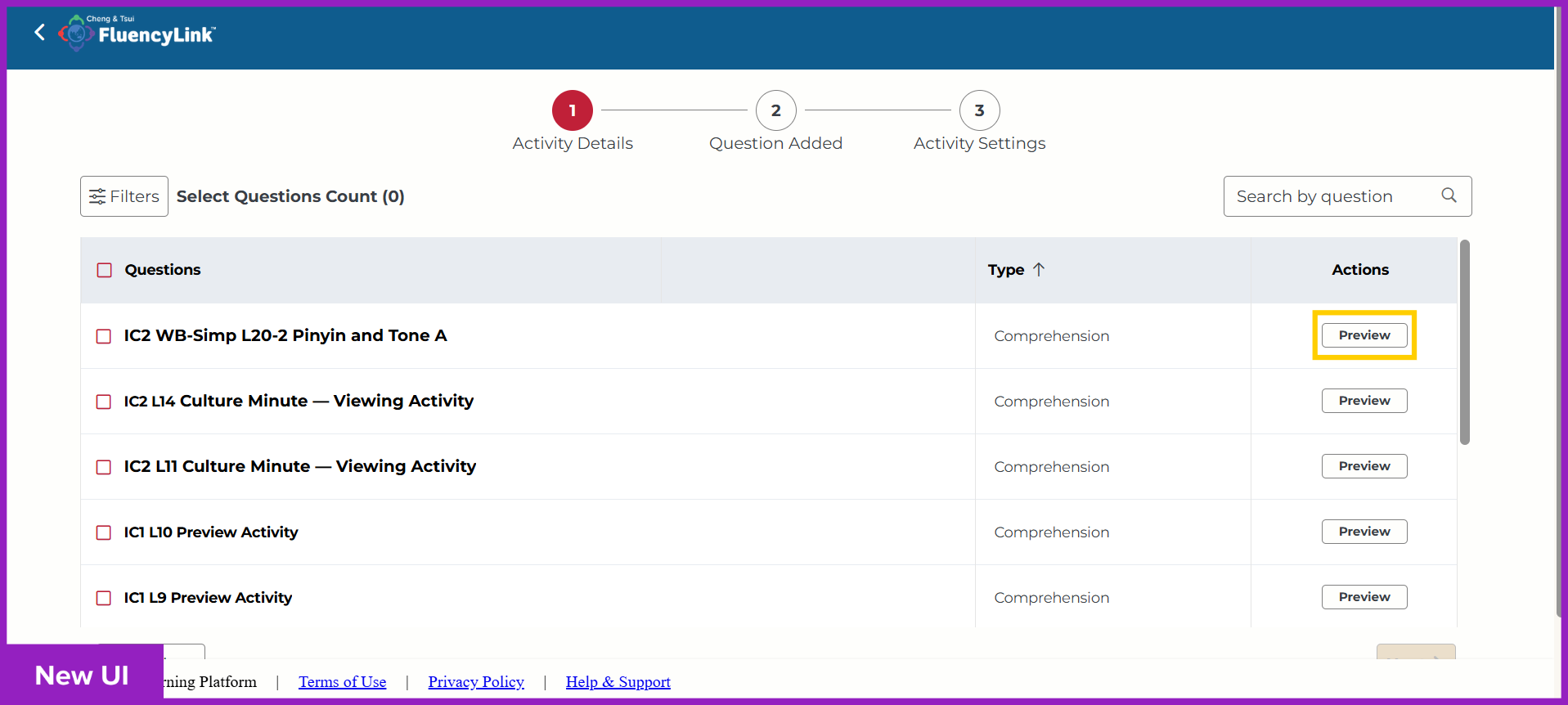 When adding questions from Question Bank to an Activity, you can now use the preview button to view the content of individual Questions.